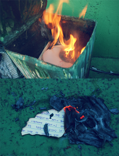 찢어버리면 흔적이 남아서, 태워버리고자 했던게 있어요..