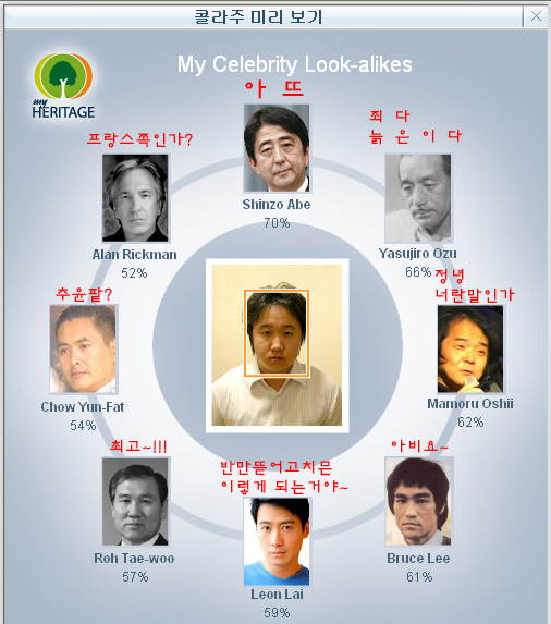 와~이거 재밌네요 전 이름도 모르는 외국계 여배우 (portia derossi) 가 제일 많이 닮았다고 나오네요;;;-_-;;