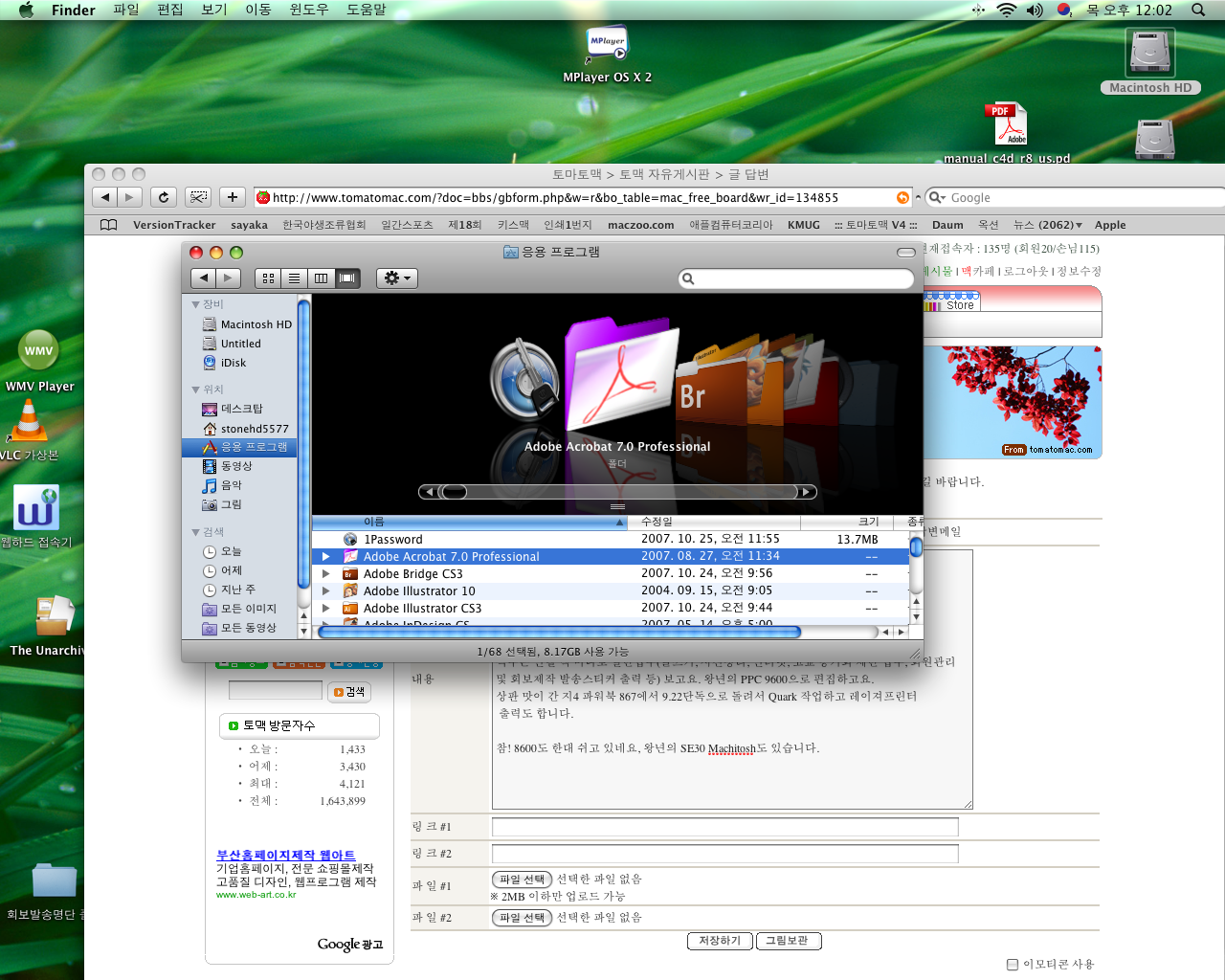 석두는 인텔 맥 미니로 일반업무(글쓰기, 사진정리, 인터넷, 고교 동기회 제반 업무, 회원관리 및 회보제작 발송스티커 출력 등) 보고요. 왕년의 PPC 9600으로 편집하고요.
