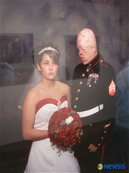 한 해군병사와 아름다운 신부의 결혼식. 그러나 병사의 몰골은 참담했다.