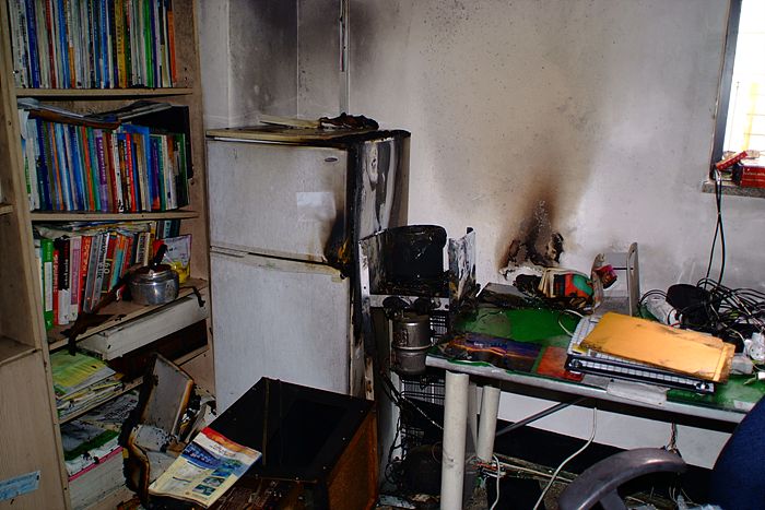 다행이 불은 금방진화가 되었지만 그난리로 사무실에 집기들이 물더미 불더미에서