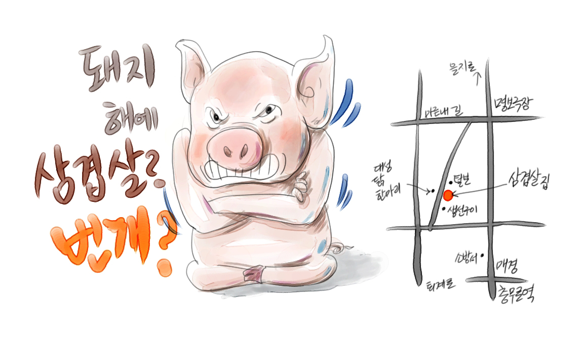 장소: 대성닭한마리 건너편 삼겹살집('사탄'이 추천)