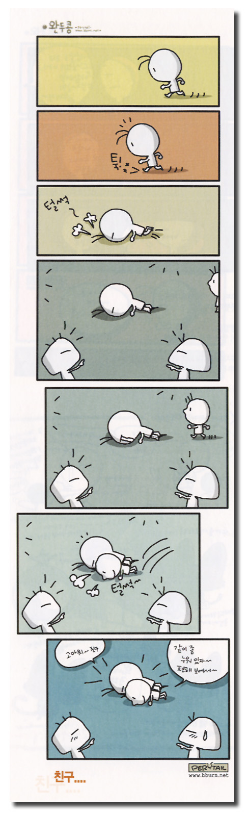 그런데여.. 아무리 친한 친구라도 해도여.. 저 카툰처럼 옆에서 그리 도와주고.. 그런 도움을 받게 되면.. 받는 입장에서는 '그것'에 익숙해져 버리게 되여.. 그러면.. 담엔 더 많은걸 더 큰걸 원하게 되고.. 그러다가는.. 언제인가.. 쫑나는거져...
