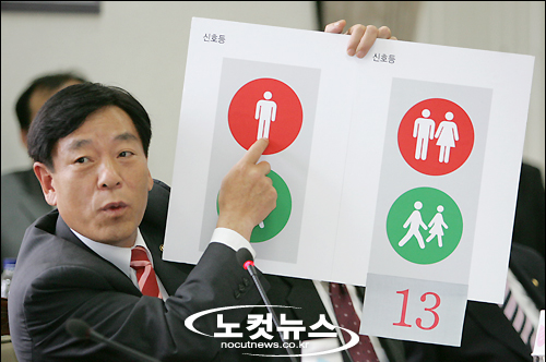 신호등이 성차별이라고 바꾸자는 의견을 제시하고 있는사진