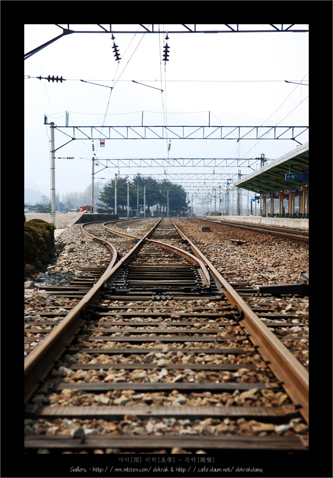구부러져 있는 것과 직선의 철도길이 나름대로의 필요에 의해 만들어졌듯