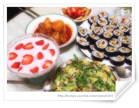 김밥도 만들고 파전도 만들고 요플레도 만들고 연근튀김도 만들고~
