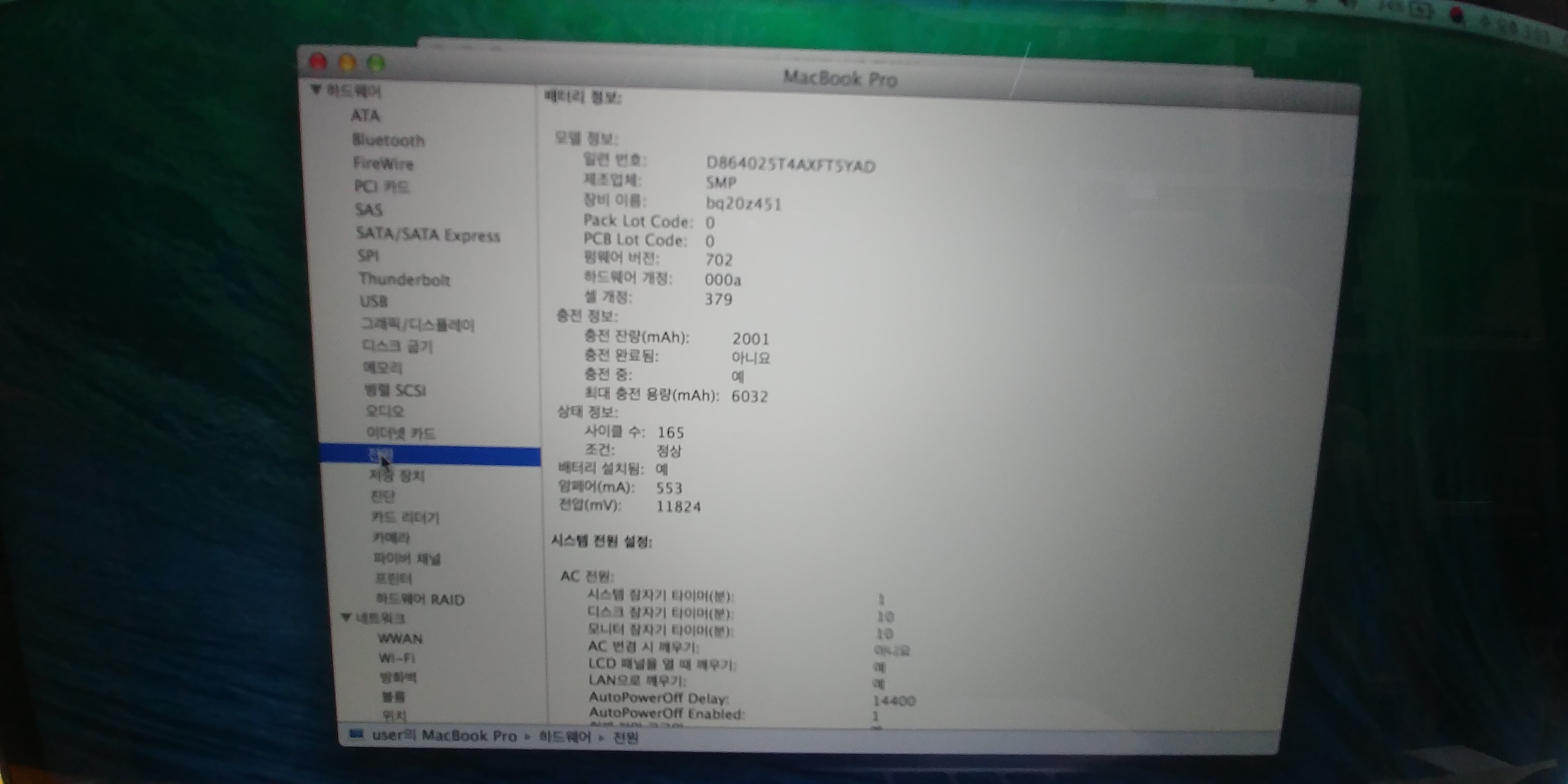 배터리 사이클 165  최대충전용량 6032