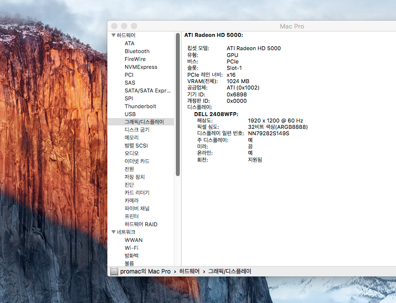 모델 식별자: MacPro3,1 (MacPro3,1은 Mac OS 10.5.1부터 Mac OS 10.11 엘캐피탄까지 설치가능합니다.)