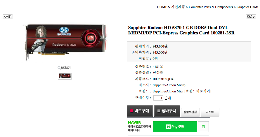 출시가는 84만원정도 했던 카드같은데
