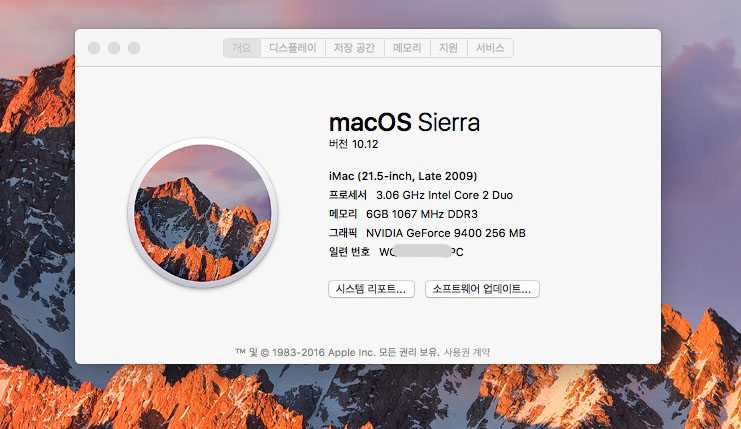작동상태는 아주 좋고 현재 최신 OS 인 시에라 설치함