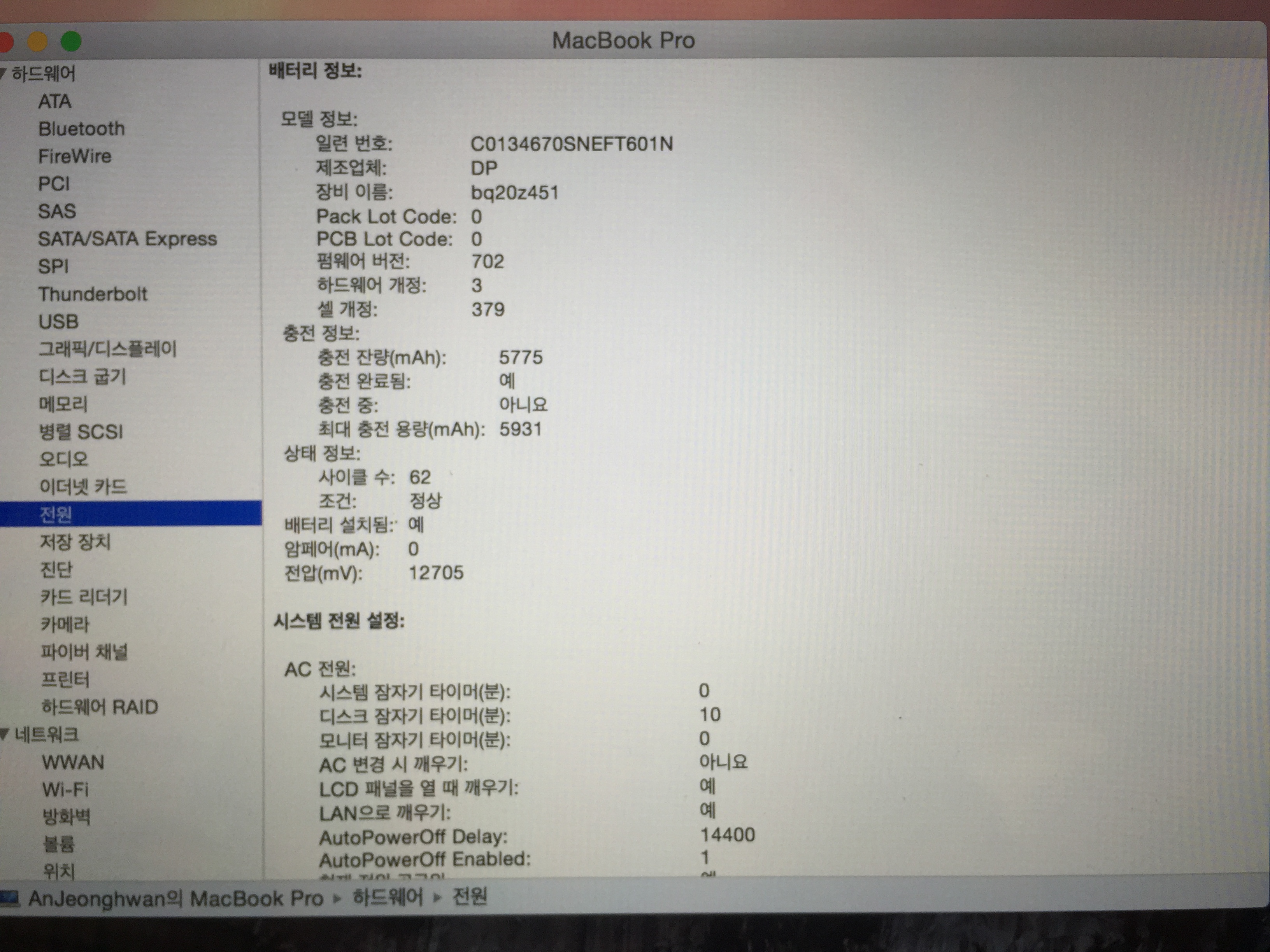 집에서만 가끔 사용하였으며 배터리사이클은 62회입니다.