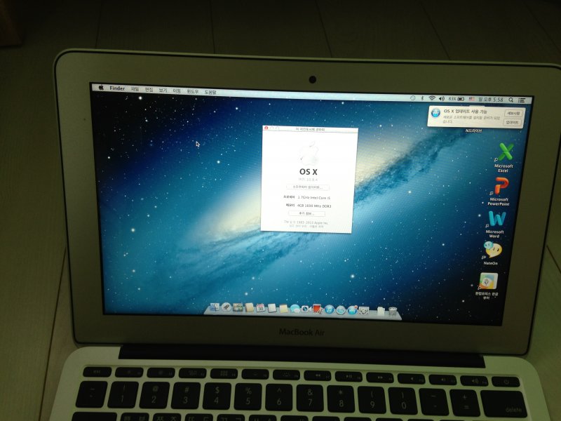 소프트웨어도 OSX 10.8 최신버전인 상태이구요