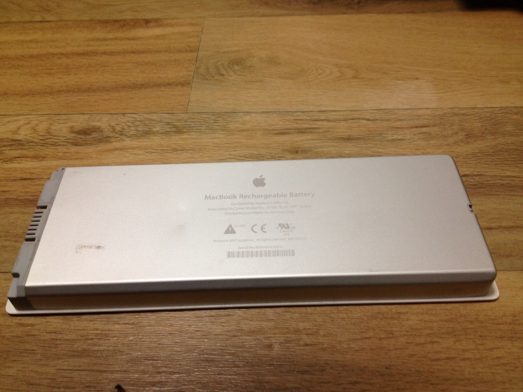 한국 애플 스토어에서 구입한 구형 맥북 13인치 화이트 배터리입니다. 애플스토어에서 지금도 팔고 있습니다. 2011년 2월에 구입하여 두 달쯤 사용했고 맥북프로를 새로 구입하면서 사용하지 않고 따로 보관하고 있었습니다.