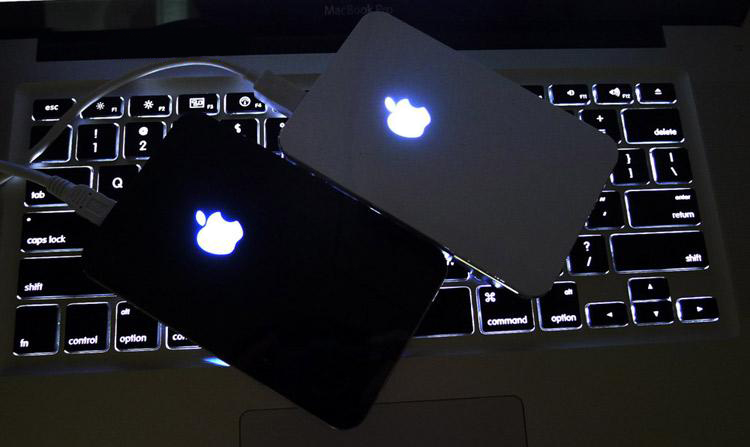 USB전원 연결되면 전면 애플로고에 LED불빛이 환하게