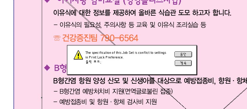 쿽에서 출력하려고 하는데 경고문이 뜨고 안되요 ㅠㅠ