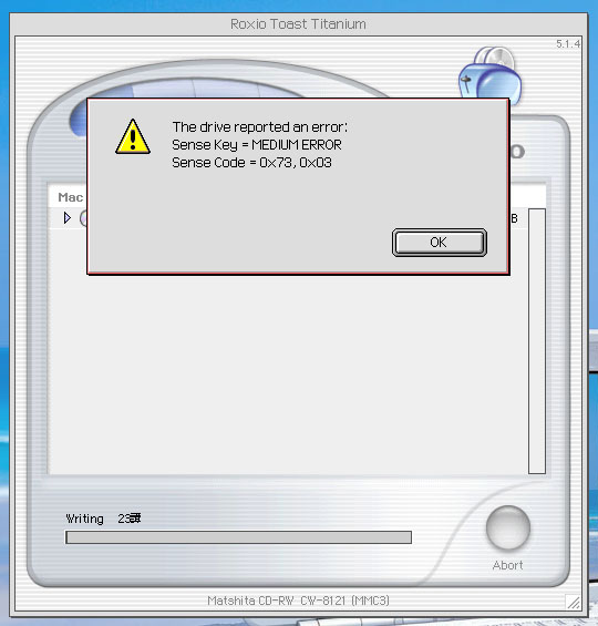 CD-ROM(RW)불량에서 오는 증상입니다. 오래사용하면 노화로인해 에러가 자주 발생합니다. 새것으로 교체후 사용하세요..