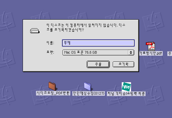 OS 9에 있는 Disk First Aid는 외장을 치료할수 없습니다.