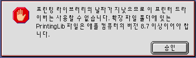 지금 선택자에서 LaserWriter 8을 선택하면 그 메시지가 뜰 것입니다.