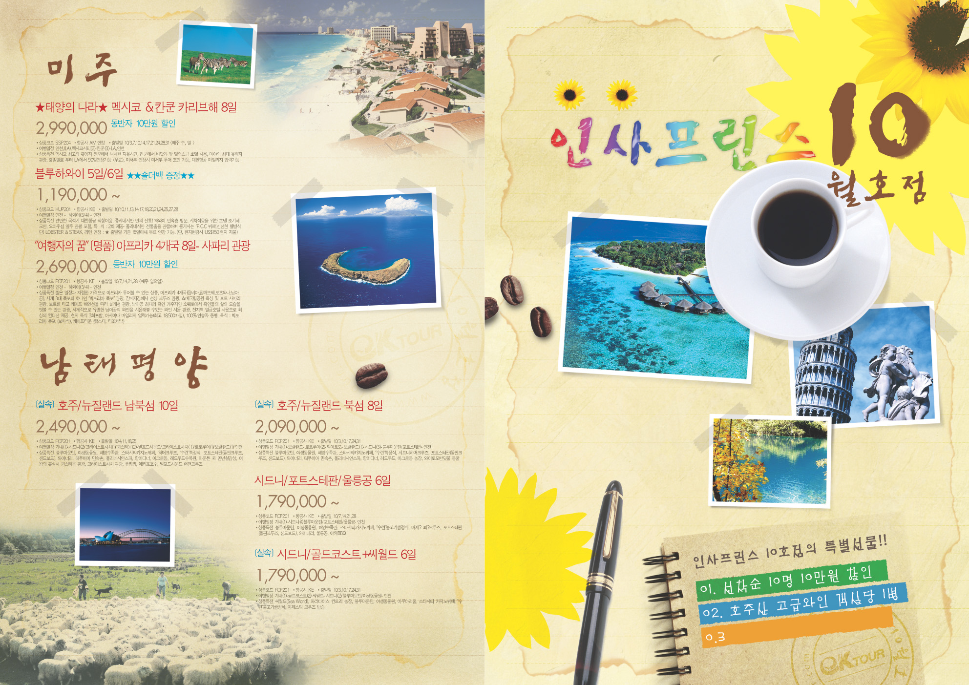 주 거래처가 여행사라 주로 여행관련작업물들을 하는데요. 연간계획컨셉엔 인디안서머였는데 요즘 커피프린스가 인기를 끌어서 그런지 인사프린스10월호로 제목을 바꿔달라네요.. ㅎㅎ;