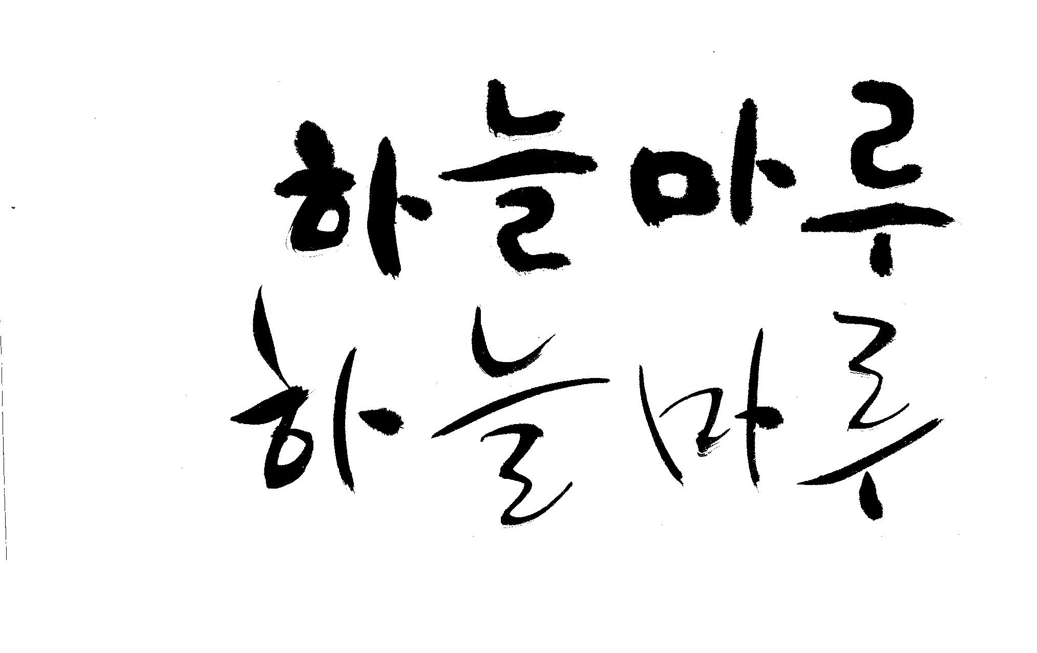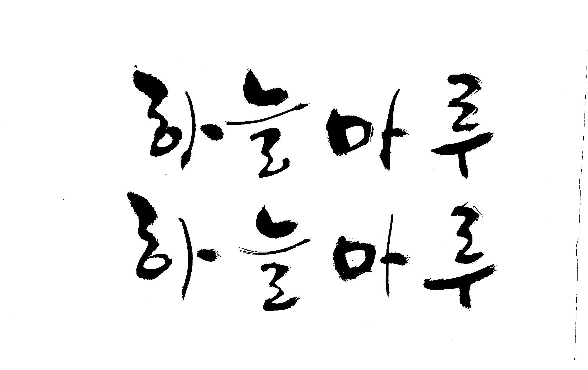 캘리 좀 부탁드립니다. 김철호 일반 0 8516 2009.02.16 23:14 > > "하늘마루" 라는 이름인데, 노인복지시설에서 발행하는 소식지 제목입니다. > 기존 서체와는 다른 고유한 이름을 정하고 싶어 이렇게 부탁드립니다. >
