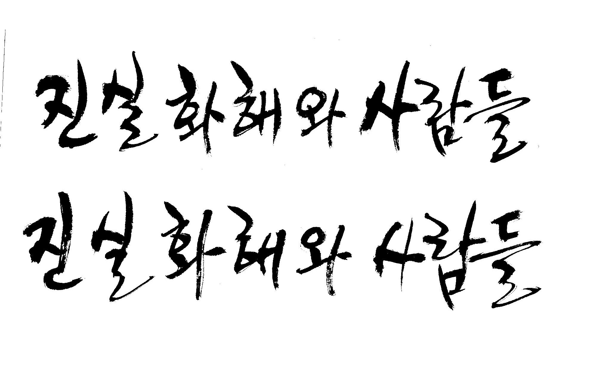 진실화해 와 사람들 캘리 부탁드립니당^^ 김철호 일반 1 7917 2009.01.30 09:50 > > 사보시안에 표지 메인 글짜로 쓸려고 하는데. > > 꼭 좀 부탁드려용^^ > > "진실화해 와 사람들" > > 바쁘신데 이렇게 부탁 드려서 죄송하고요 > > 새해 복 많이 받으세요! > > 감사합니다. >