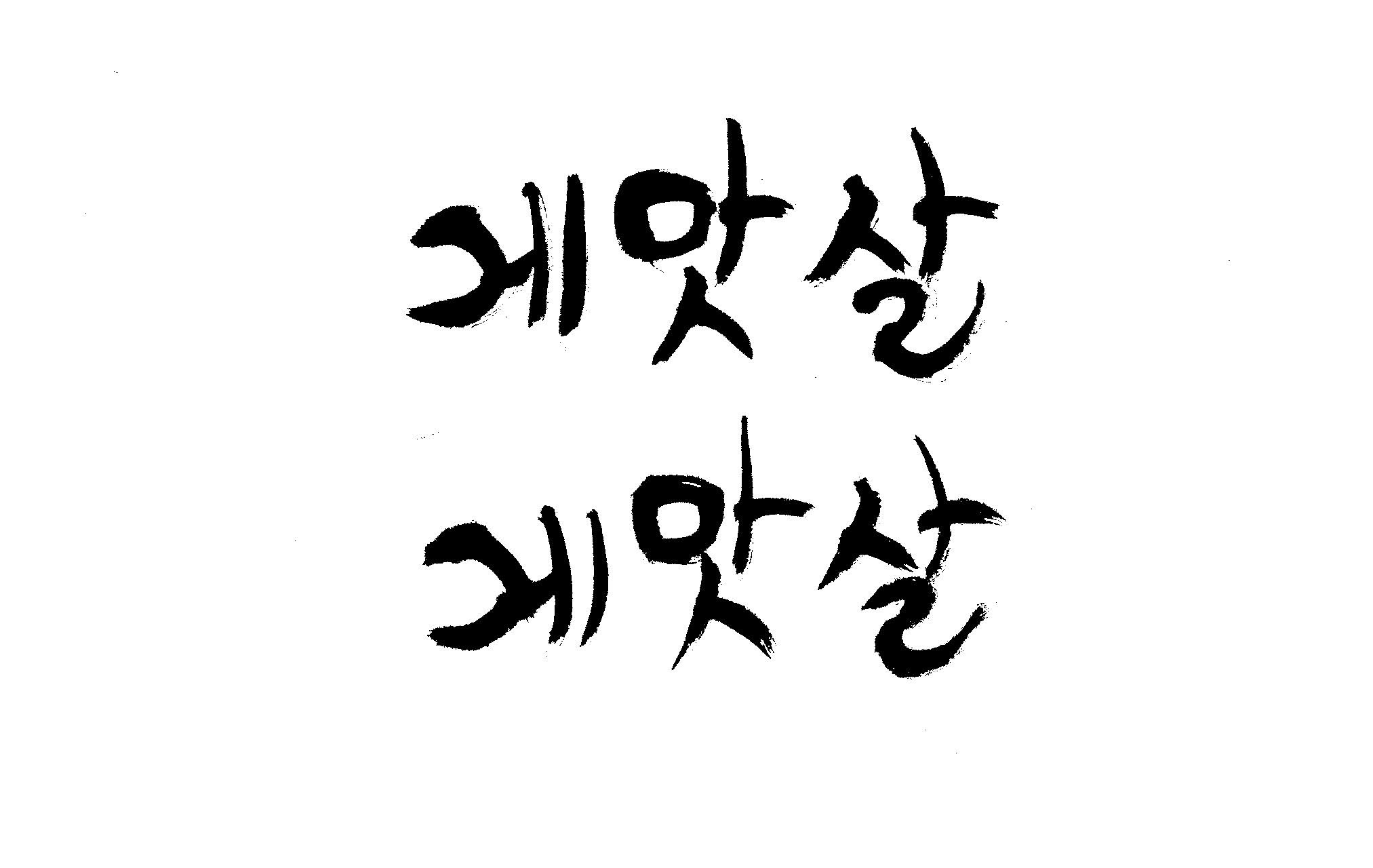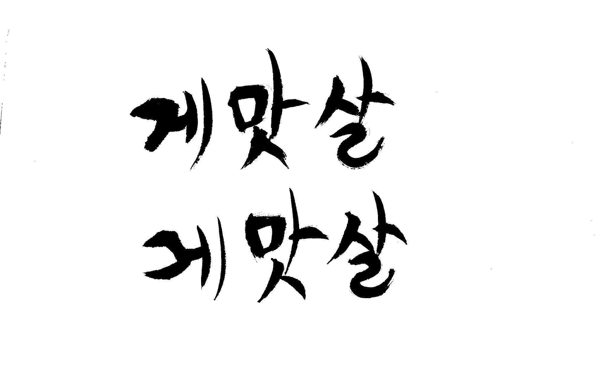 캘리 부탁드립니다. 김철호 일반 0 6432 2009.01.30 09:49 > > 제가 이리저리 써보기도 했으나 너무 이상해서 도움을 받고자 합니다. > 단어는 '게맛살' 입니다. 패키지디자인에 사용할 타이틀입니다. > 급한사항이니 부탁드립니다. 감사합니다. ^^ >